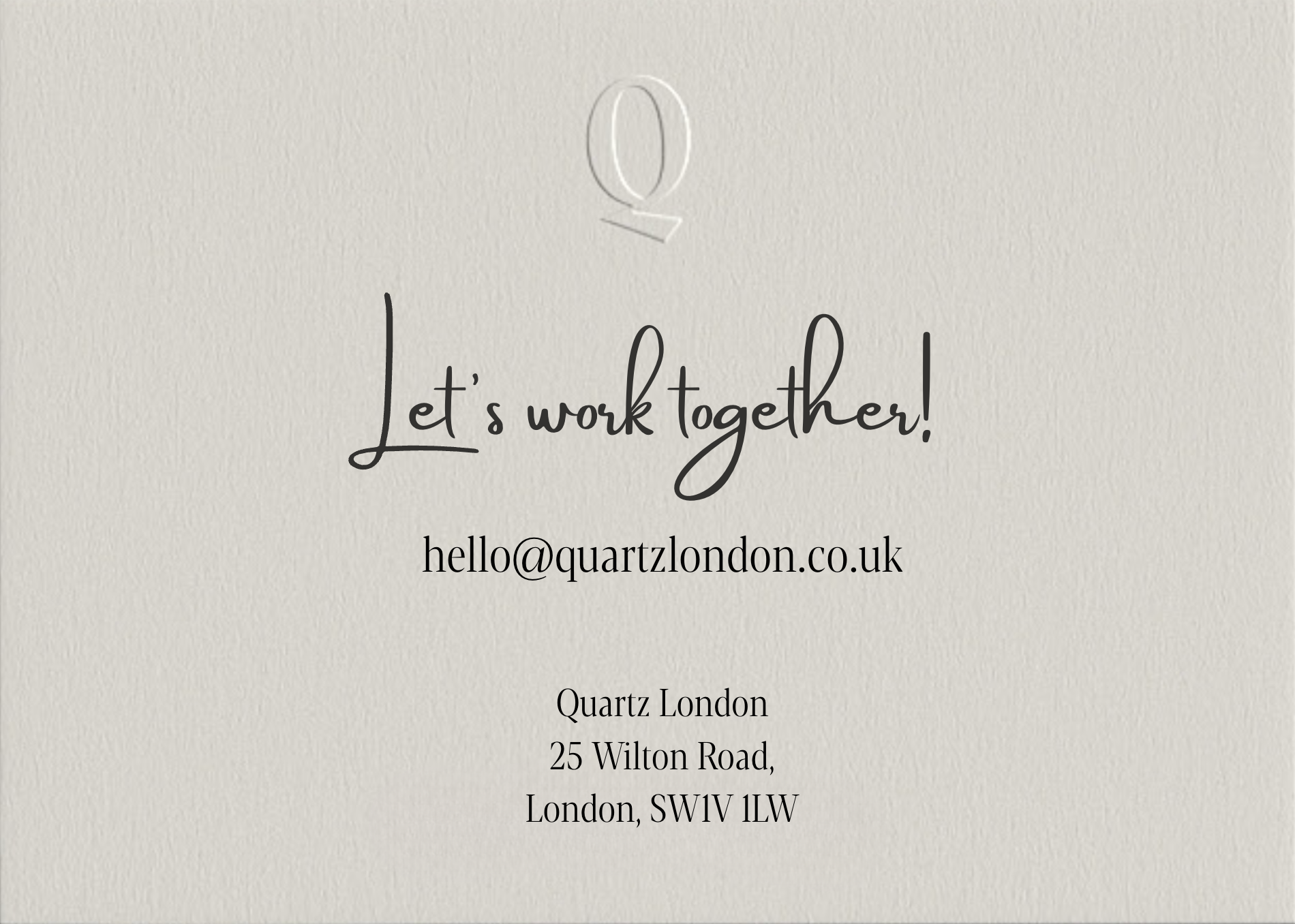 We guarantee to maximise your investment’s potential, utilising our outstanding network and industry relationships to seek the best possible partners and suppliers - allowing you to feel the impact of each QUARTZ created moment both in the immediate and long-term.